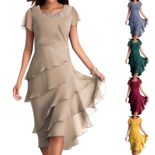 Chiffon Breeze: Layered Wave Hem Summer Dress